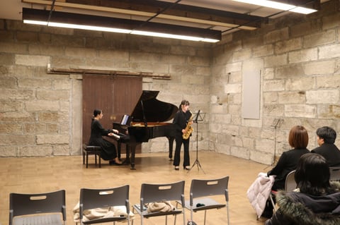 本学岩見沢校 鍵盤楽器(ピアノ)コース、管弦打楽器(サクソフォン)コースの4年生によるコンサート。
