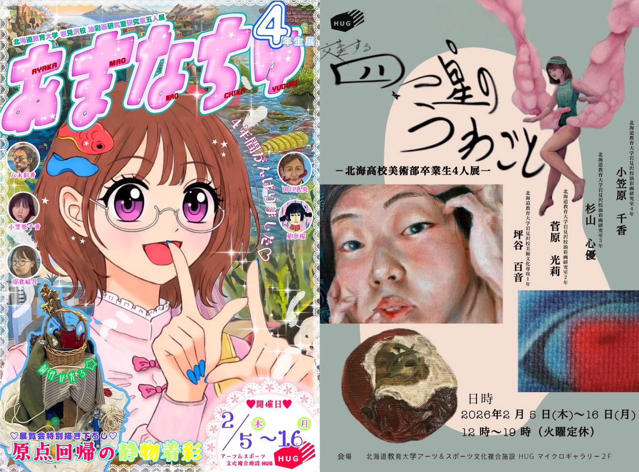 | タイトル | 油彩画研究室4年生5人展「あまなちゅ」/ 北海高校美術部卒業生4人展「交差する四つ星のうわごと」 |