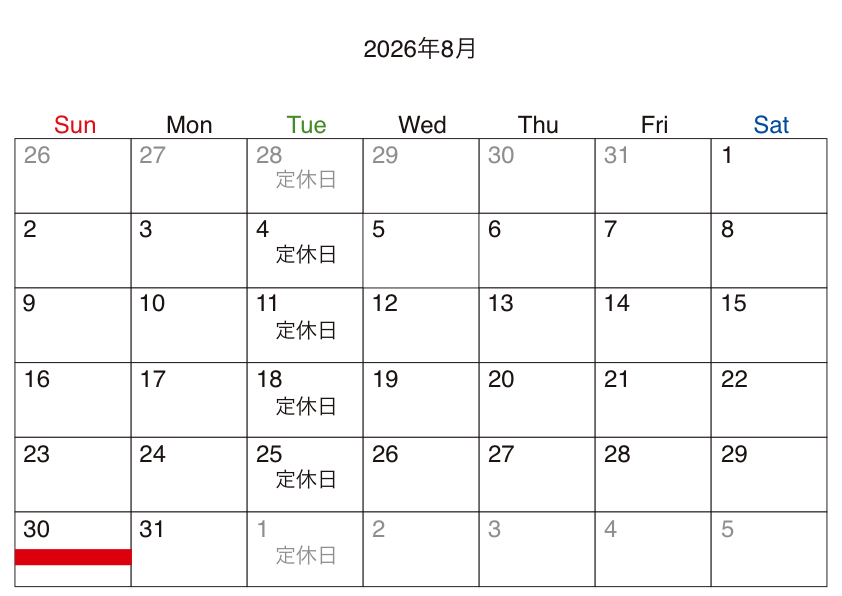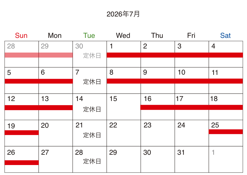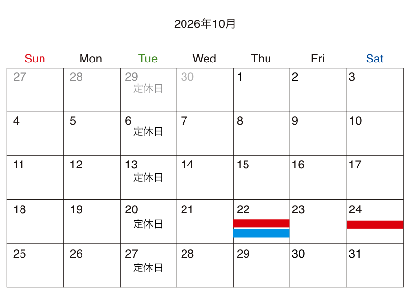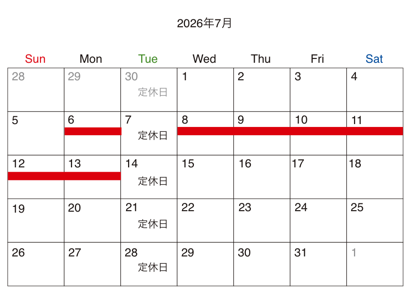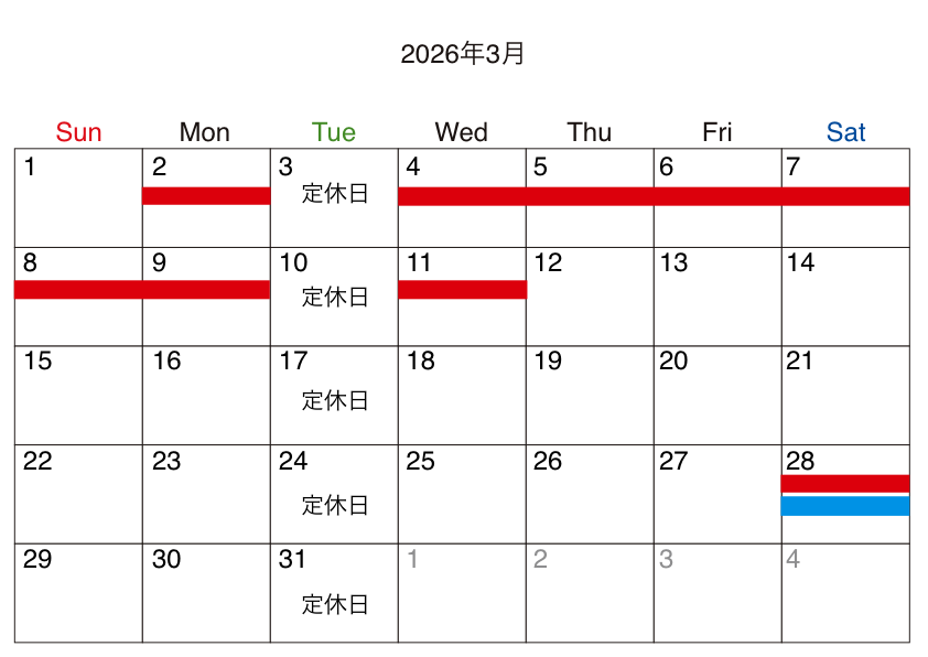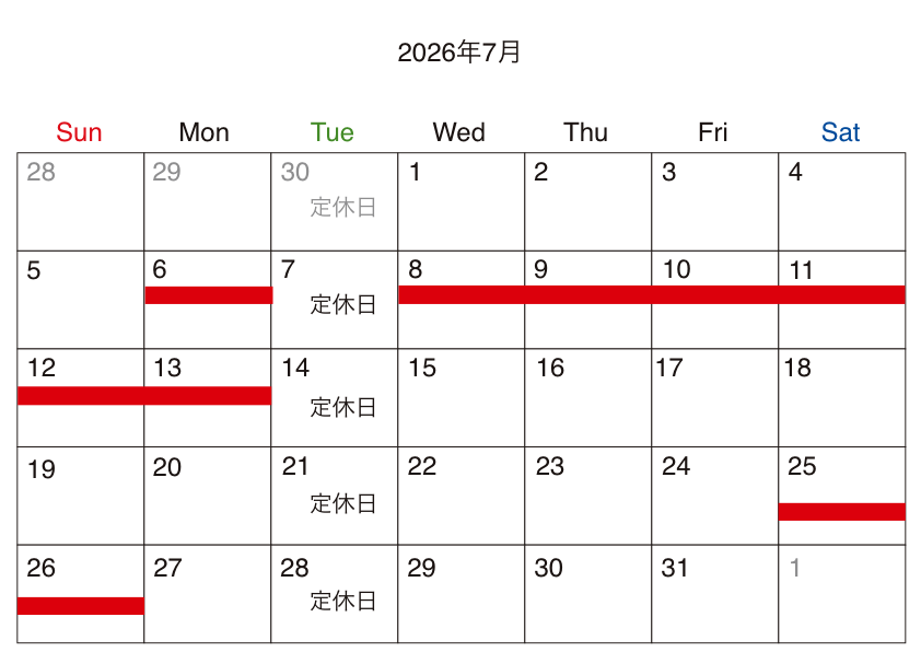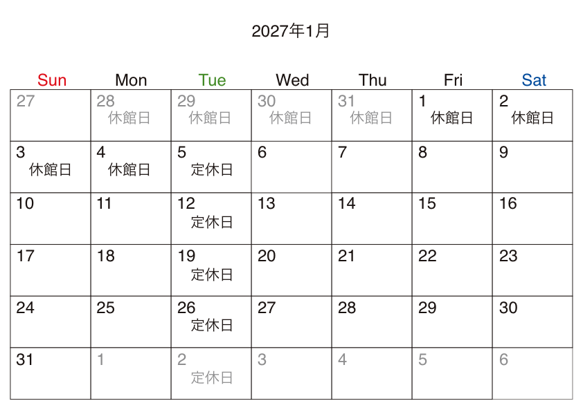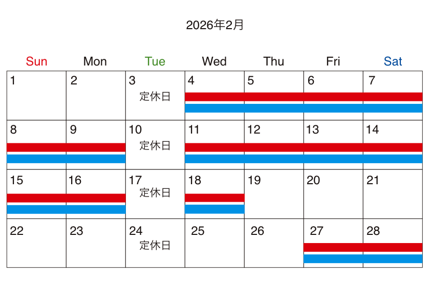 ※ こちらは搬入出を含む予約日程を示したものです。イベントの実際の会期は「展示・イベント」をご覧ください。