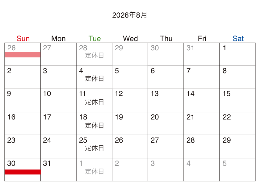 ◯2026年8月30日(日)