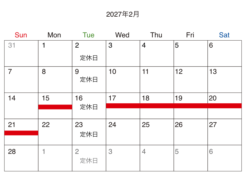 ◯2027年2月15日(月)〜2月21日(日)