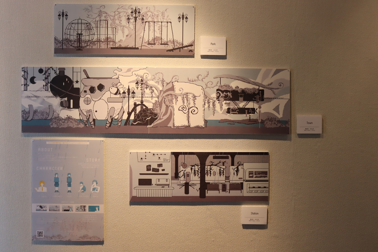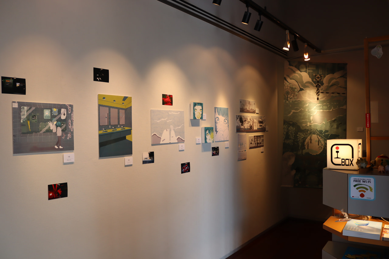 本展では、主に「ピクセルアート」を用いて描画した日常風景を展示しました。 作品は統一して色数を絞ることで、冷たさや不安定さ、違和感を静かに感じさせます。 日常の中で、ふと心に影が差す――そんな息苦しさや、孤独を感じる瞬間。 普段、目には見えない、心の奥に潜む感情や葛藤。 息のしづらい閉塞感を、ピクセルアートならではの表現に載せて描き出しました。 |