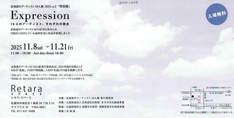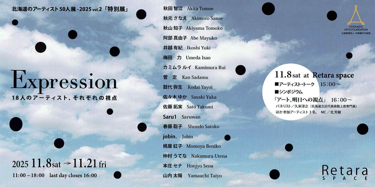| 展示名 | 北海道のアーティスト50人展-2025 vol.2「特別展」 Expression 18人のアーティスト、それぞれの視点 |