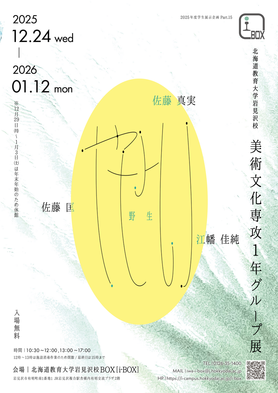 | 展示名 | 2025年度学生展示企画Part.15 佐藤真実・佐藤匠・江幡佳純「野生」 |