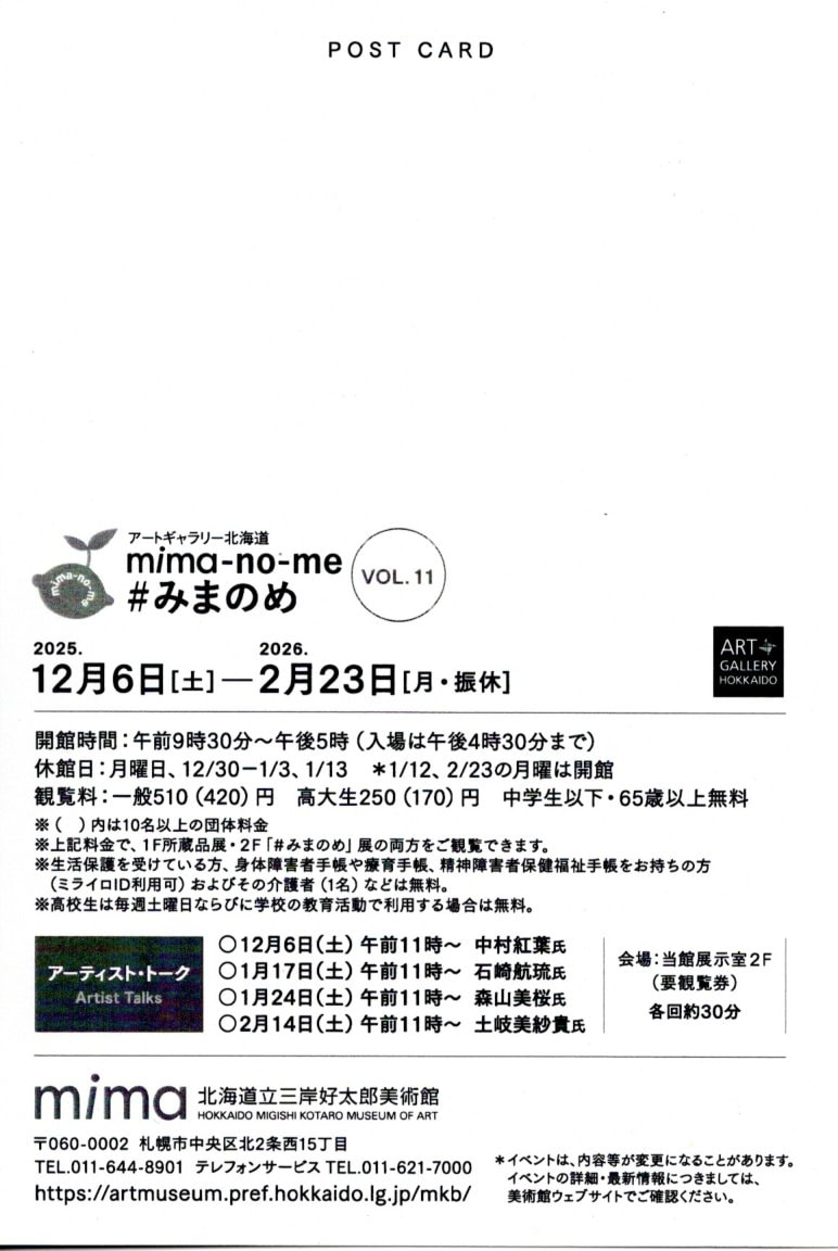 | 展示名 | アートギャラリー北海道 mima-no-me #みまのめ vol.11 |