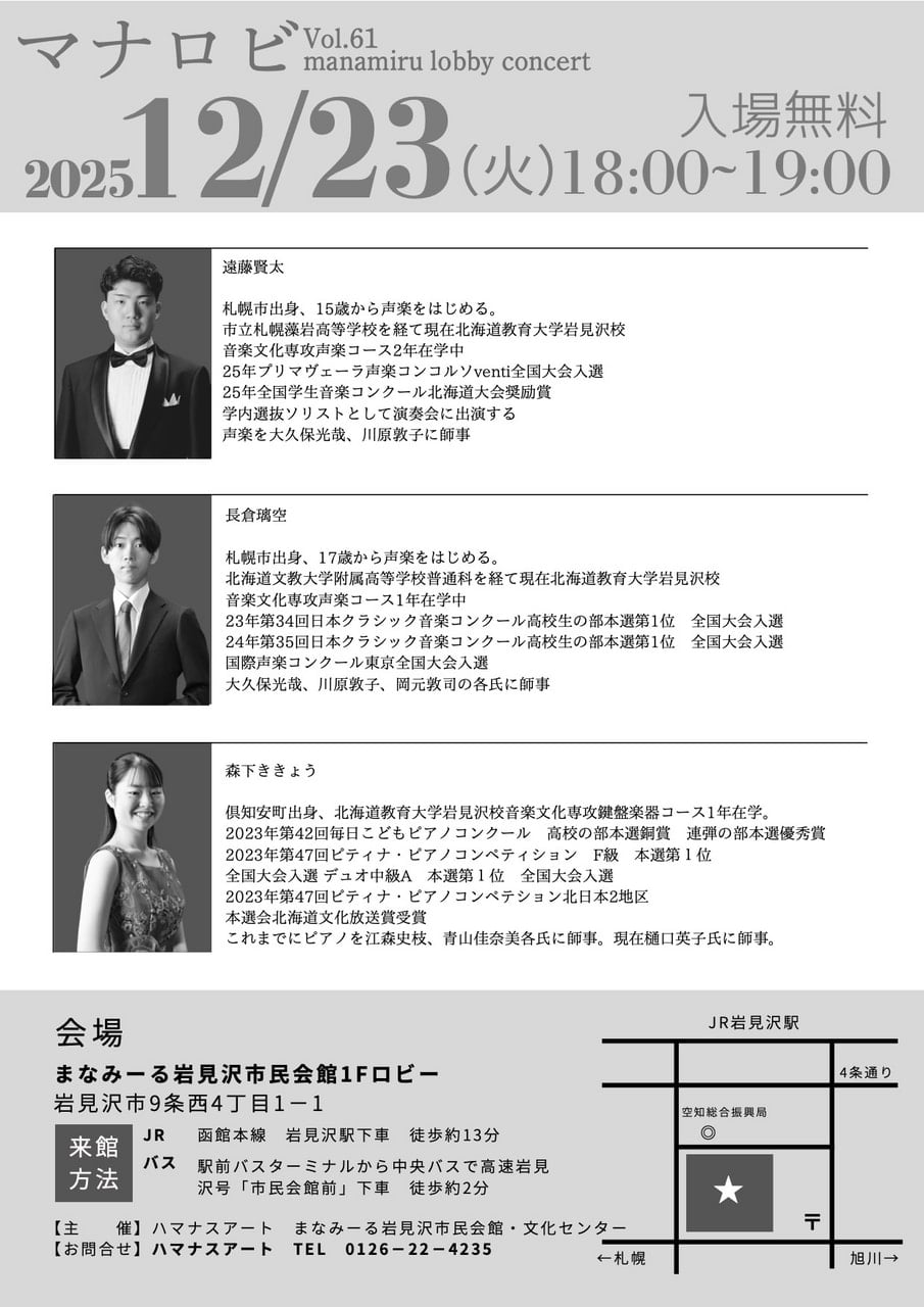 まなみーる岩見沢市民会館1階ロビー 岩見沢市9条西4丁目 |
