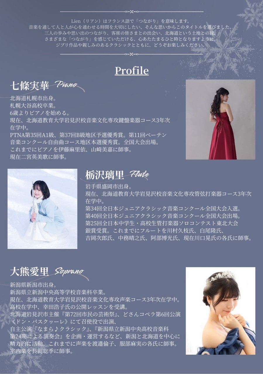歌とフルートとピアノが贈るトリオコンサート「Lien」 |