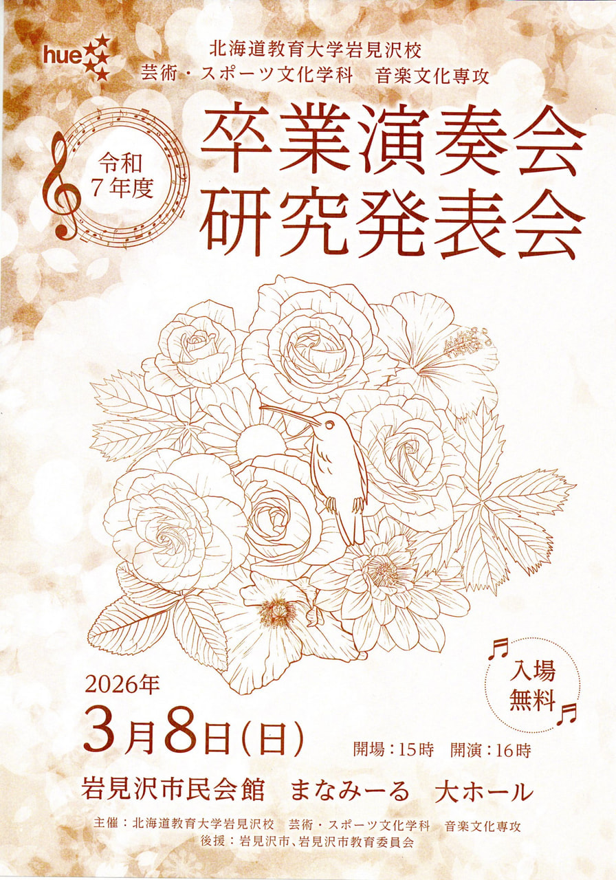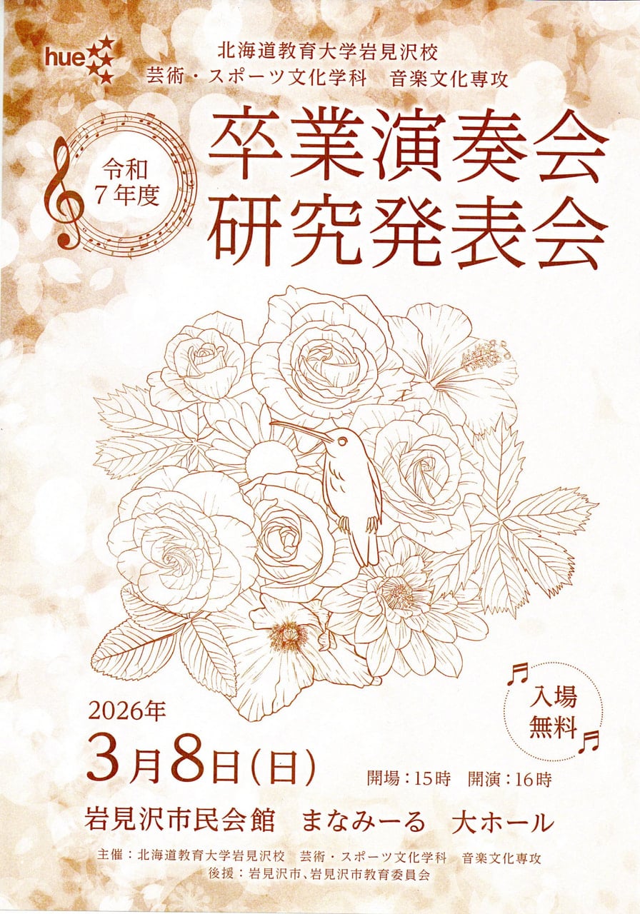 | 演奏会名 | 令和7年度 北海道教育大学岩見沢校 音楽文化専攻 卒業演奏会・研究発表会 |
